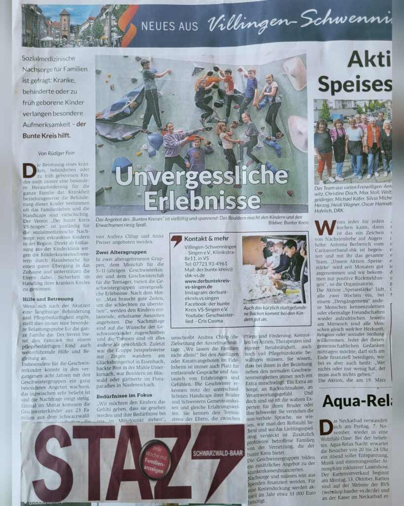 Oktober 2025: Stadtanzeiger: Unvergessliche Erlebnisse für Geschwisterkinder